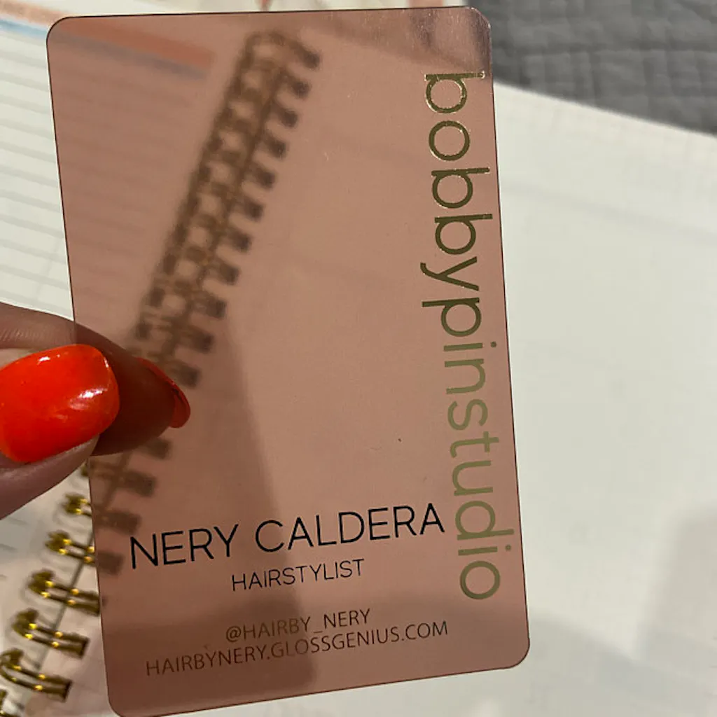 Picture a beauty business card that looks like a drop of glass touched by sunlight: crystal-clear plastic, whisper-thin gold foil, and your logo floating like a luxury watermark. One graceful swap in the mirror and clients know you value polish — and expect it from their stylist, too.
